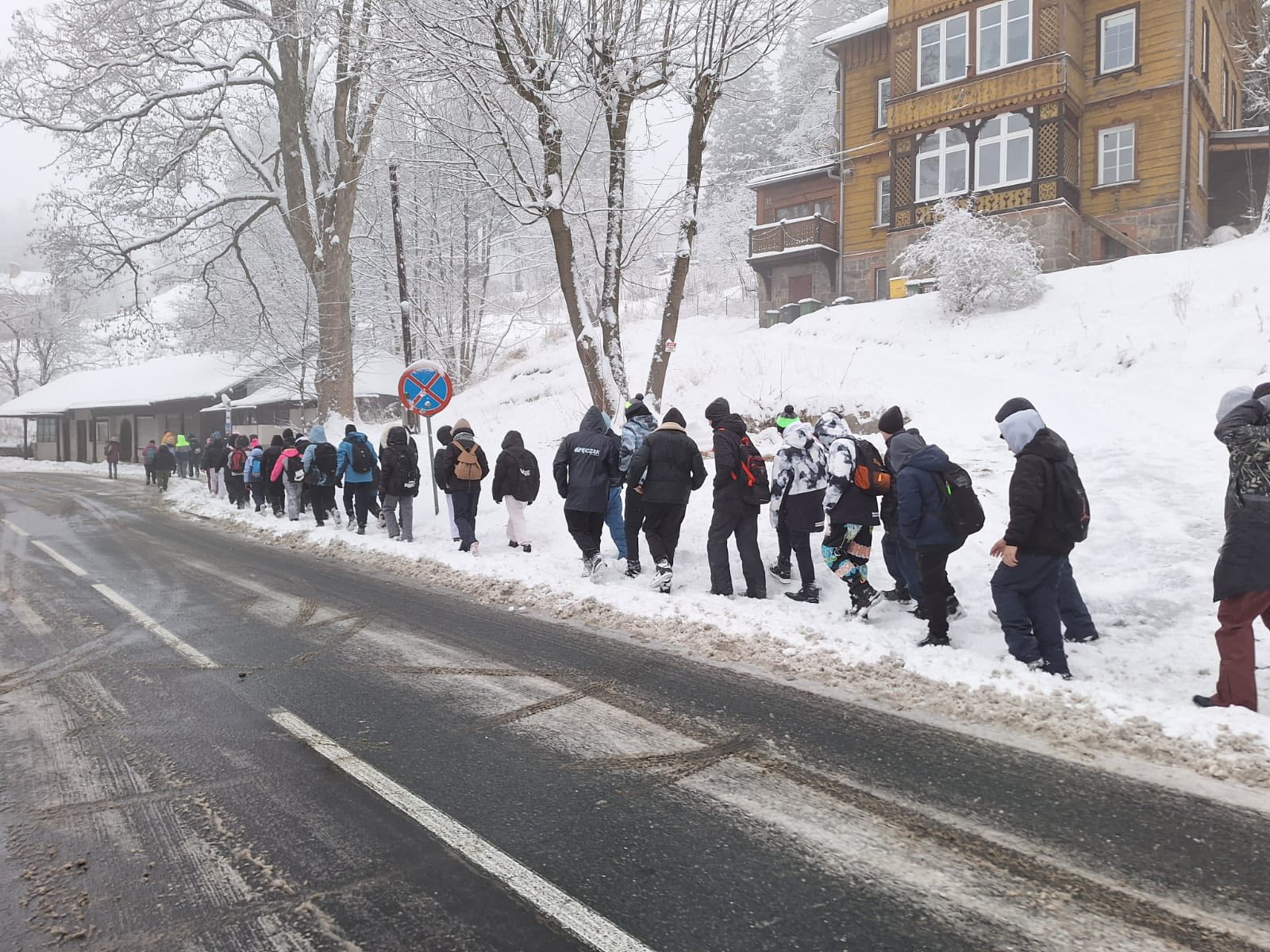 Podczas naszego wyjazdu na zieloną szkołę przeżyliśmy niezapomnianą przygodę! Już od rana ruszyliśmy w kierunku Samotni, maszerując górskim szlakiem w świetnych humorach. Po drodze podziwialiśmy widoki, żartowaliśmy i dodawaliśmy sobie energii do kolejnych kroków.