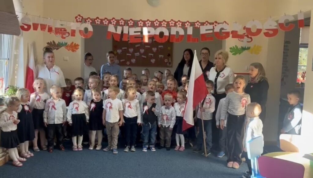 , w Zespole Edukacyjnym w Nowinach Wielkich uczniowie szkoły oraz dzieci z przedszkola wzięły udział w ogólnopolskiej akcji „Szkoła do hymnu”